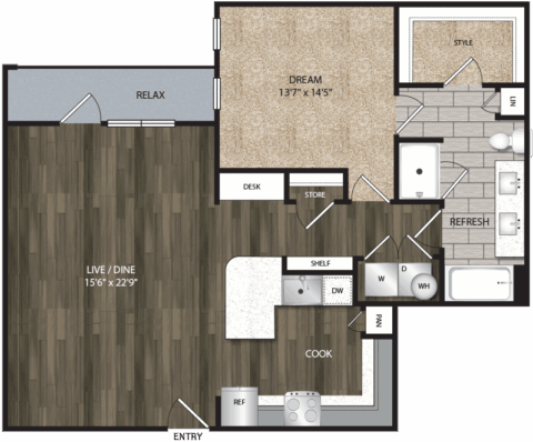 1 Bed | 1 Bath | 744 SQ. FT.A1D