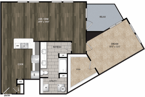 Studio | 1 Bath | 540 SQ. FT.S1B